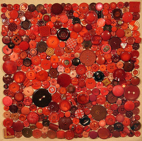 red buttons sewed on canvas, 30 x 30 cm