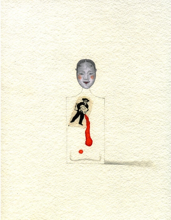 The mask of Japanese traditional «Noh» dance perfectly hides the emotions of women enclosed in a fragile glass bottle.